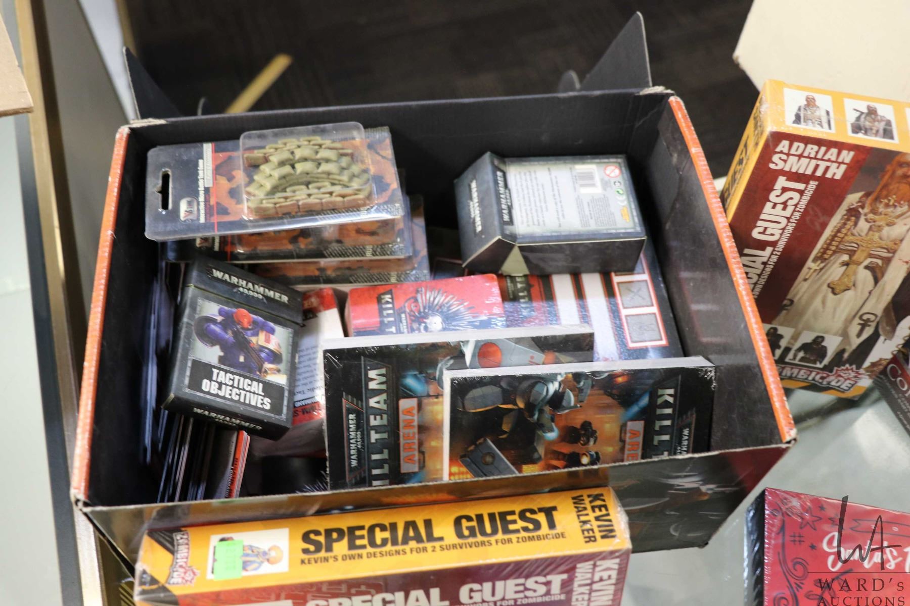 Warhammer Kill Team Arena, Decent Journeys in the Dark conversion kit, two Special Guest Zombiecide, one Fantasy Adventures starter deck, Tomb Raider collectible card game, Race Day miniature car set and one Santa's Renegades board game. Important: Pickup is in Edmonton. Long comic boxes (28 x 8 x 11.5 and 23kg) will be shipped in 2 boxes approximately 11 x 9 x 12 and 13kg each through Canada Post. Long boxes can be palletized for large invoices. Details to follow