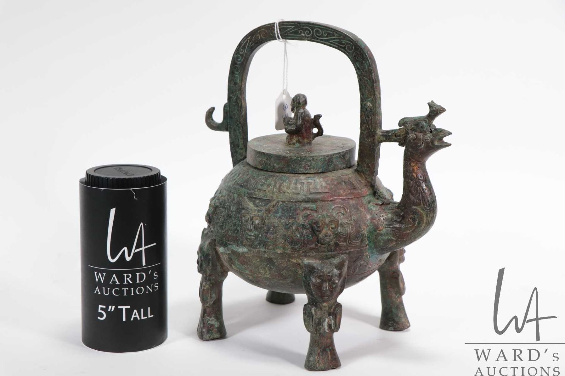 Warring State bronze ceremonial wine vessel, purportedly 18th century, 10" to top of handle