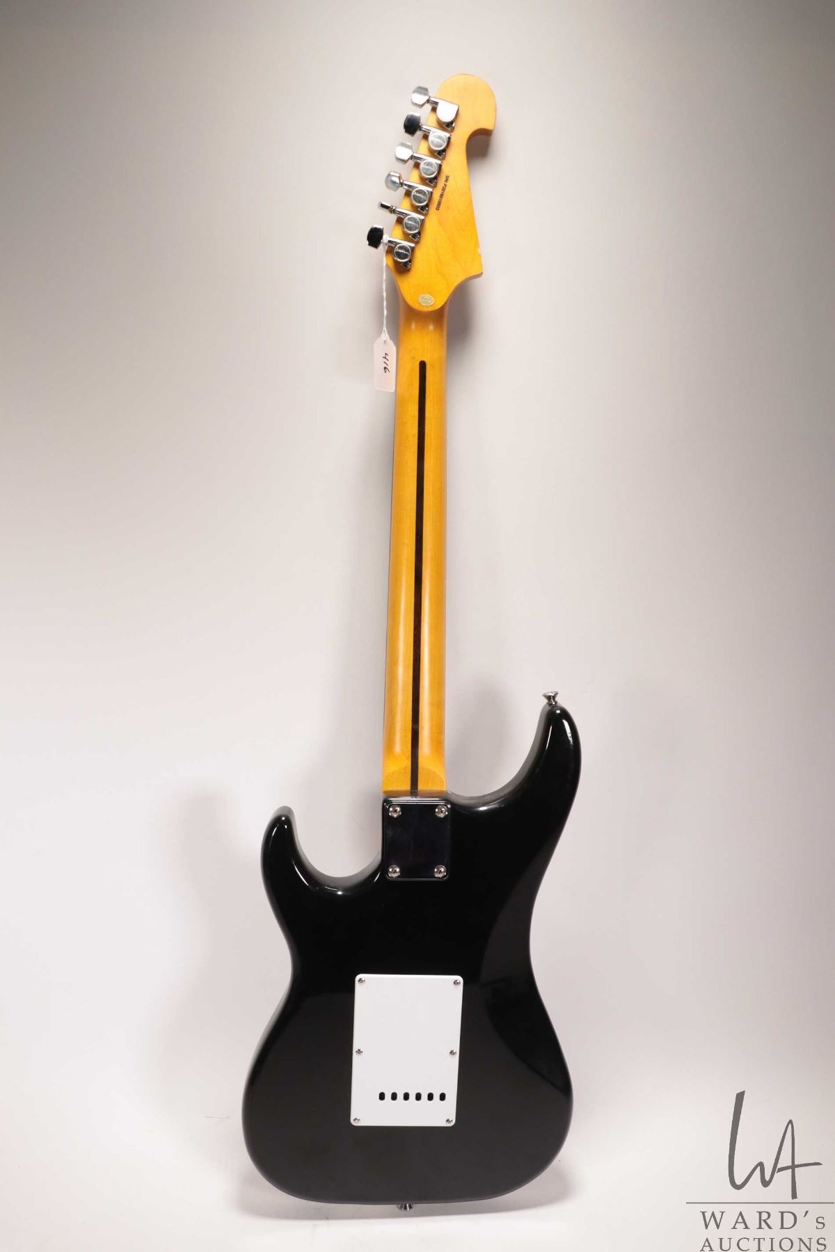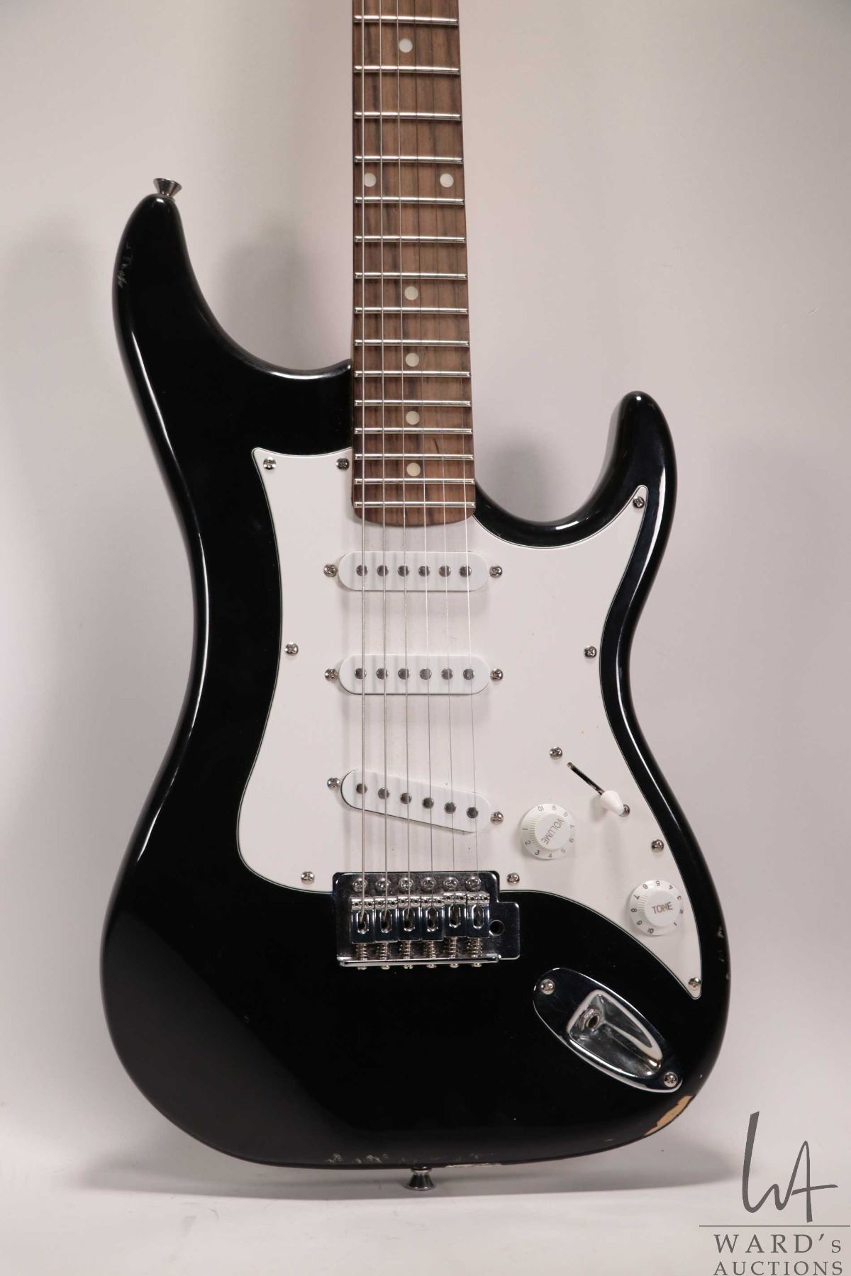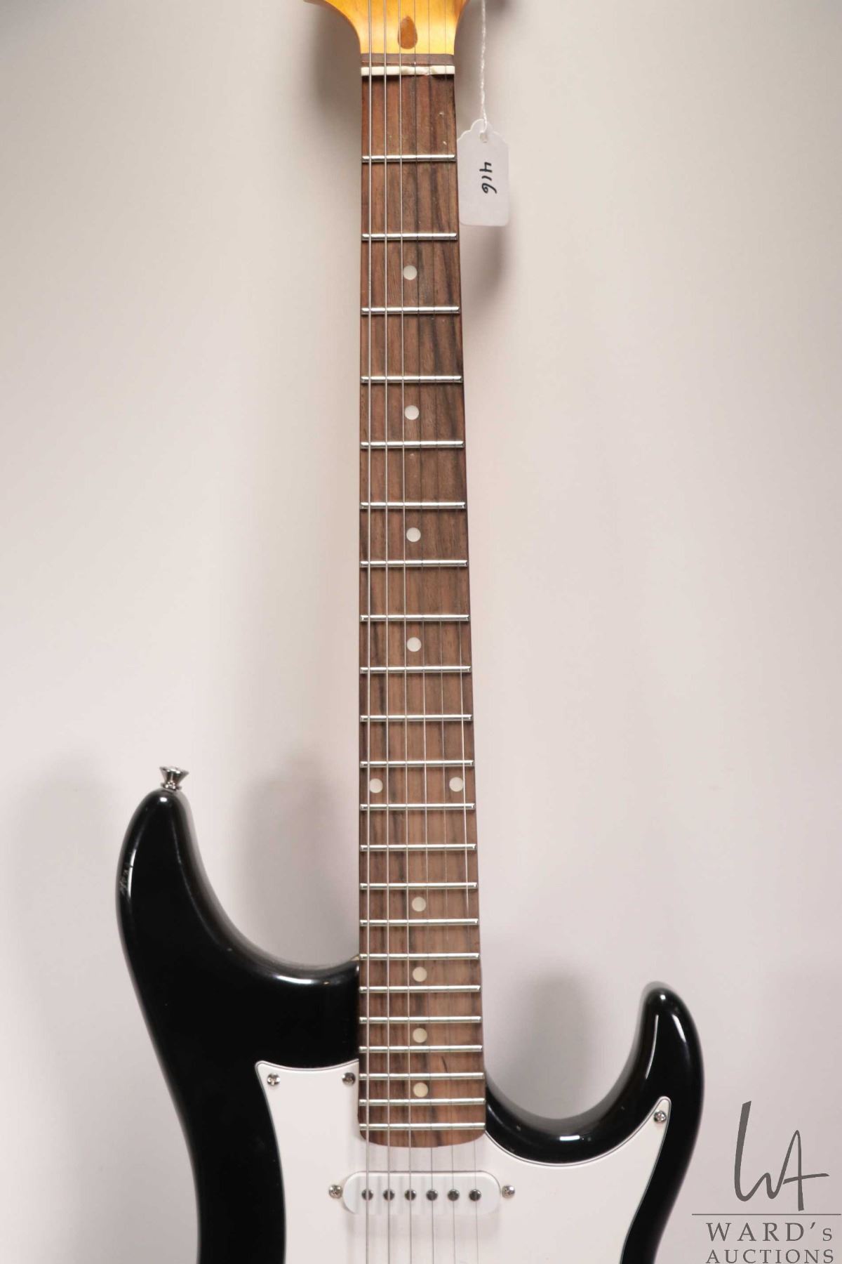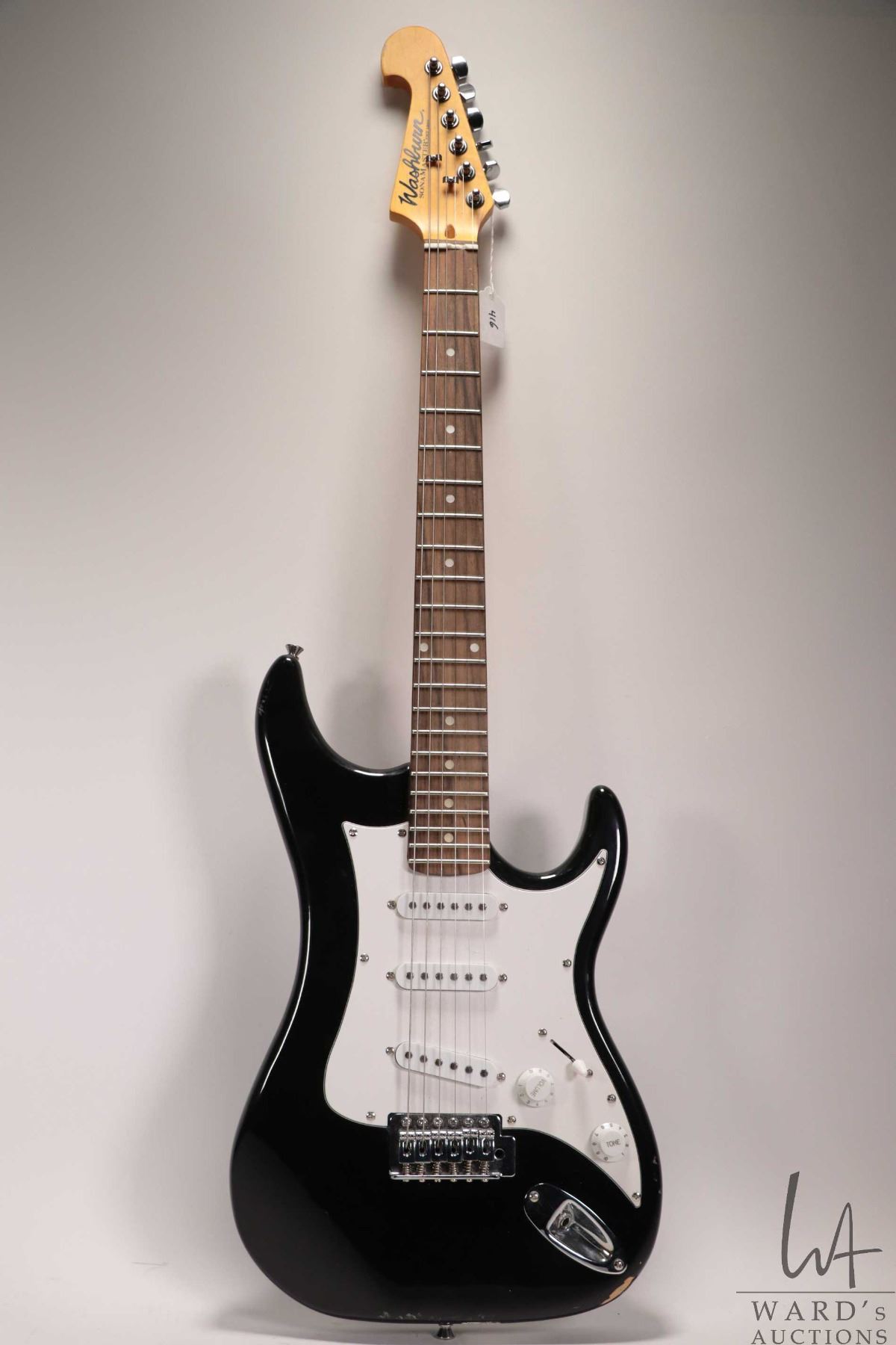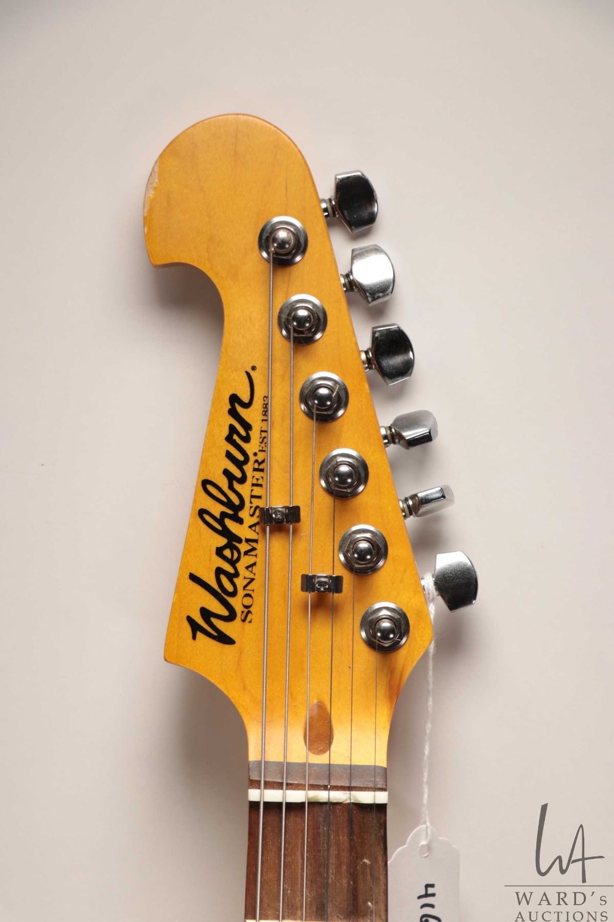 Washburn Sona Master Strat style guitar, High gloss contrasting, white pick guard, SSS pickup configurations, five switch and sprung bridge. Serial no. P2016010503 Note: Heavy wear on body and missing Tremolo arm