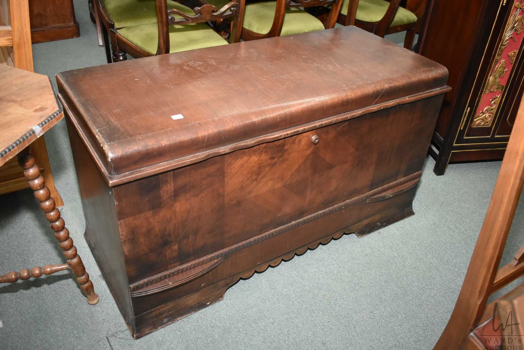 Waterfall style cedar lined walnut chest with drawered base, original cardboard lining and small tray made by Honderich Furniture Ltd.