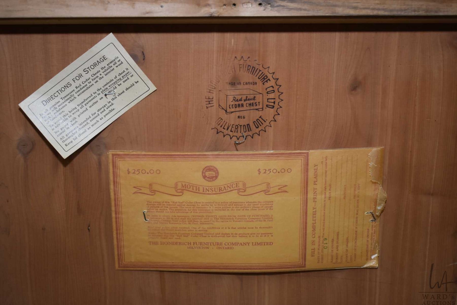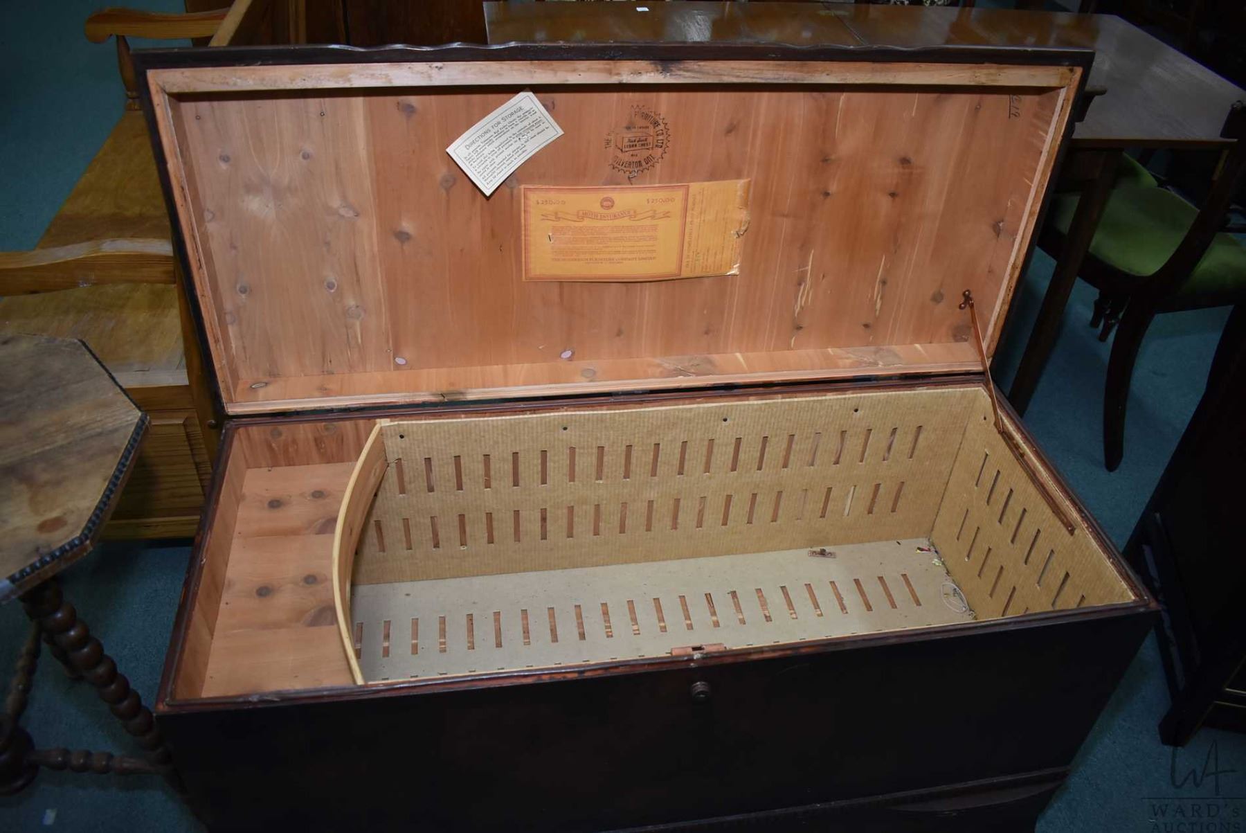 Waterfall style cedar lined walnut chest with drawered base, original cardboard lining and small tra