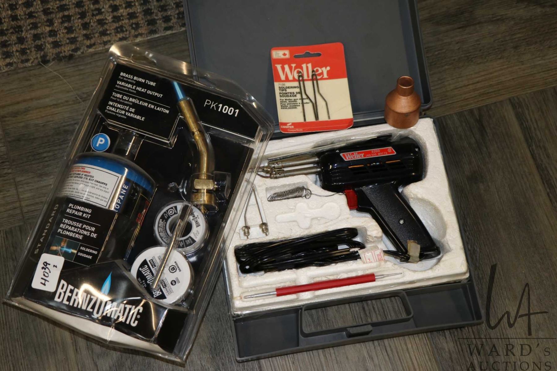 Weller electric soldering gun and a Benzomatic propane plumbing repair kit, working at time of cataloguing