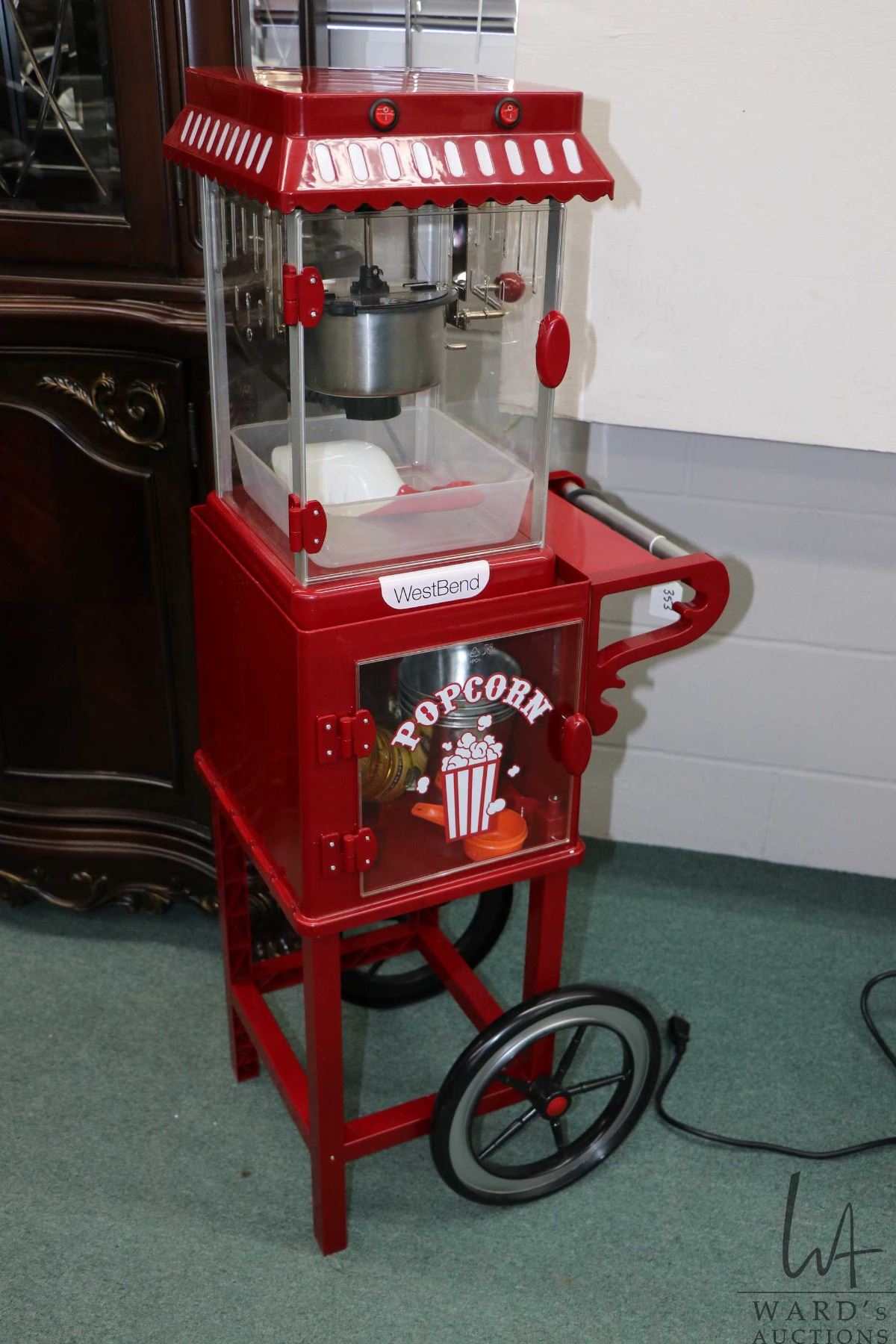 Westbend movie style popcorn maker, includes supplies including scoops, popcorn, oil, four popcorn b