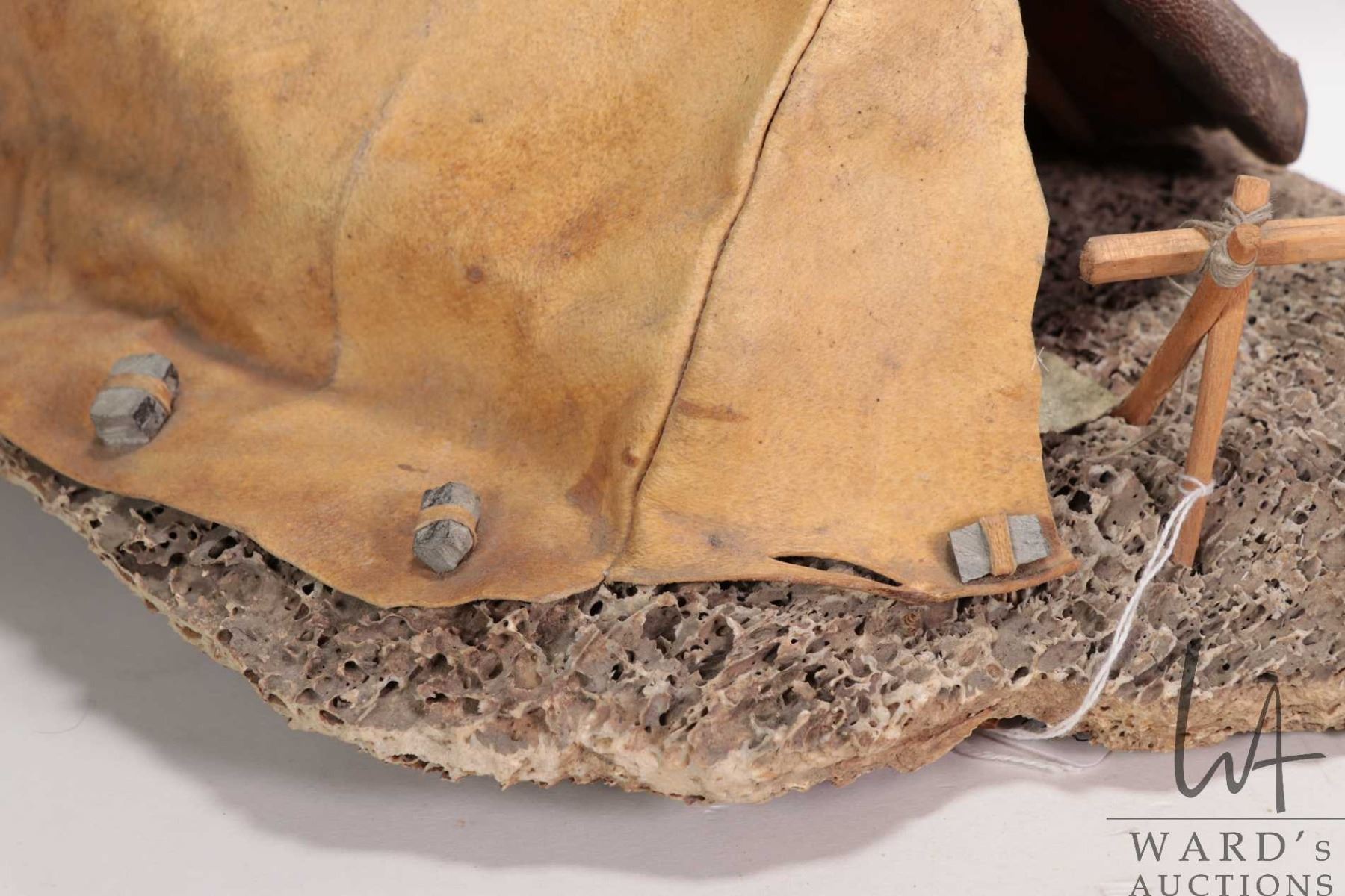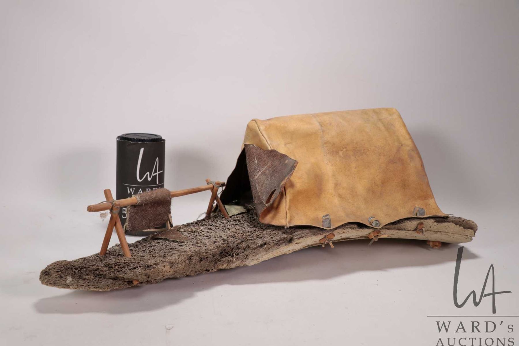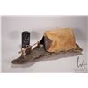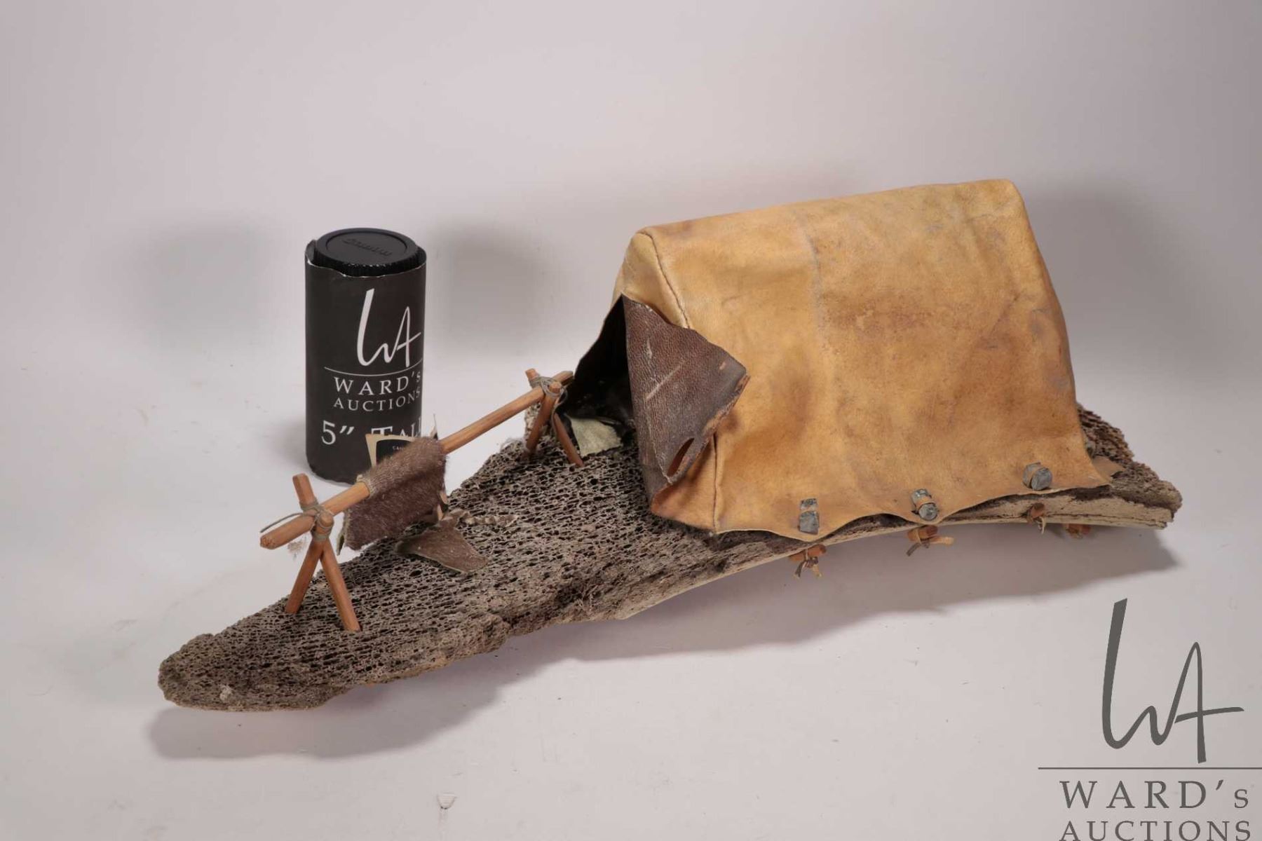 Whale bone, seal skin and wood sculpture titled "Summer camp" Eskimo Art label artist no. 16142-3, P
