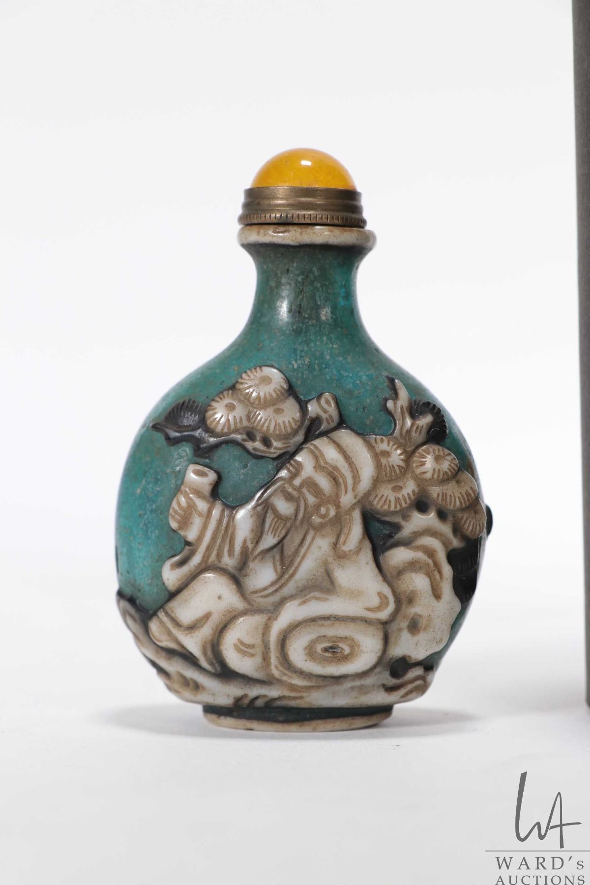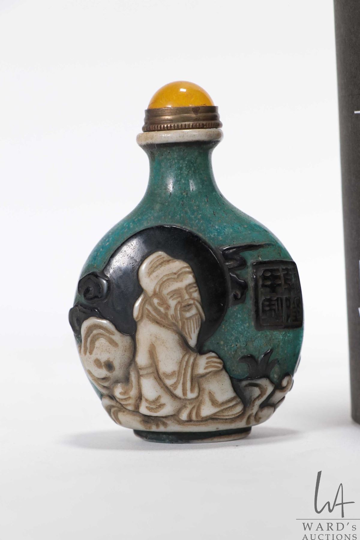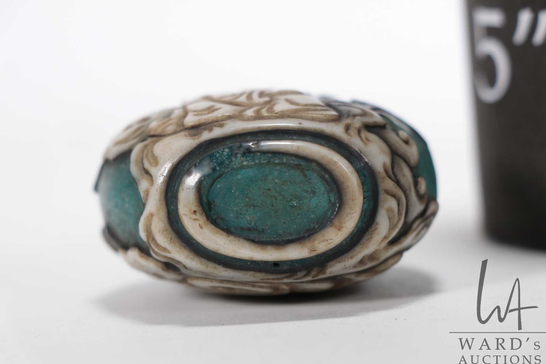 White enameled peking glass snuff bottle, purportedly 19th century, 3" in height