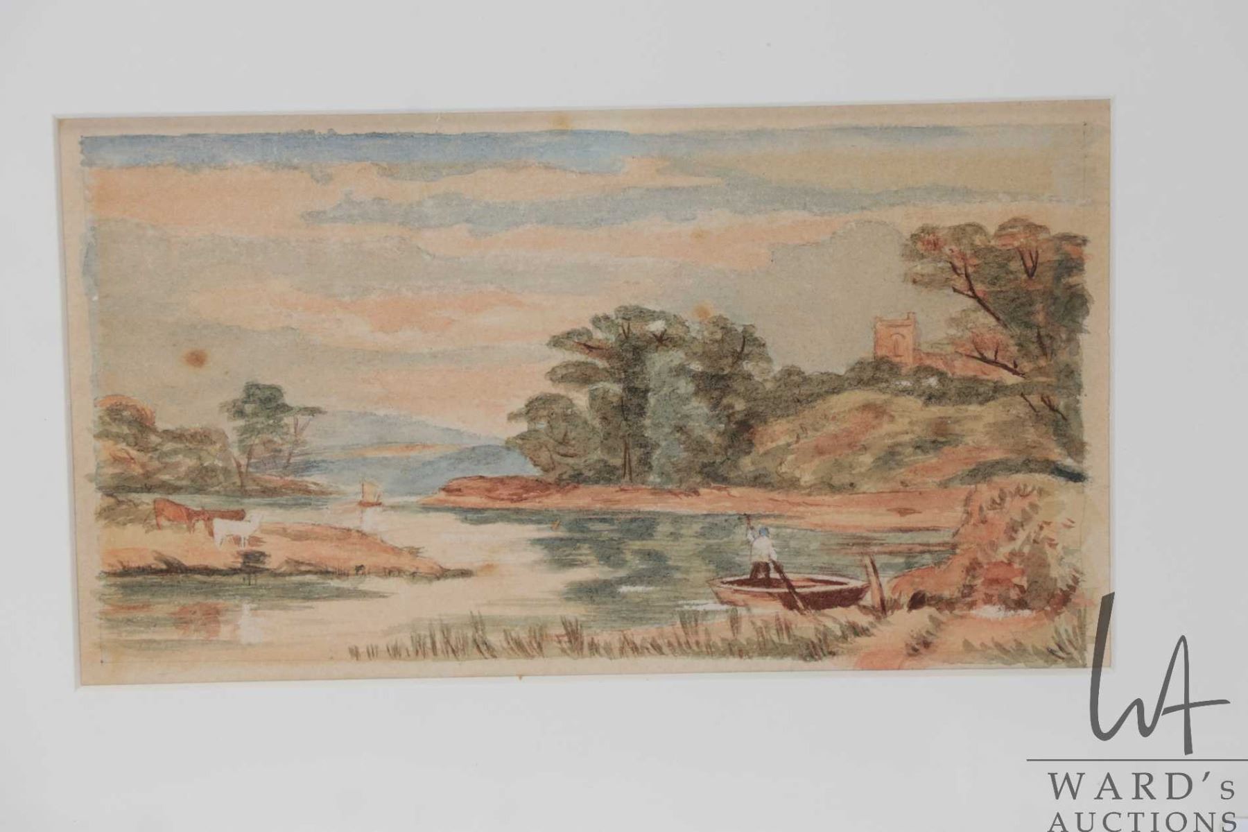 William Hope, two gilt framed watercolour paintings of English rivers with small boat, 4 1/2" X 7 1/2" and 4" X 7"