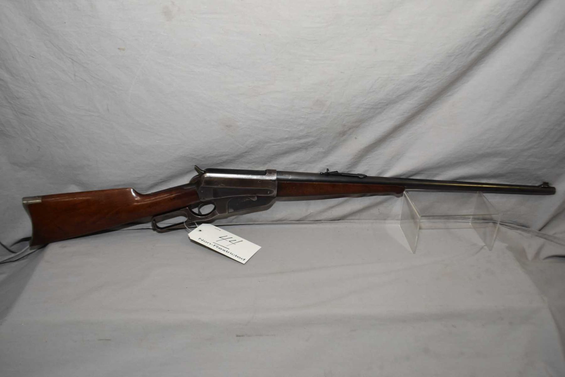Winchester Model 1895 .35 WCF Cal Lever Action Rifle w/ 24" rnd bbl [ blued finish, fading in some areas, with some marks and scratches, slight surface rust, barrel sights, good wood with some marks and scratches, ebony tipped forend, metal crescent butt plate, Circa 1903 ] Ser # 37826