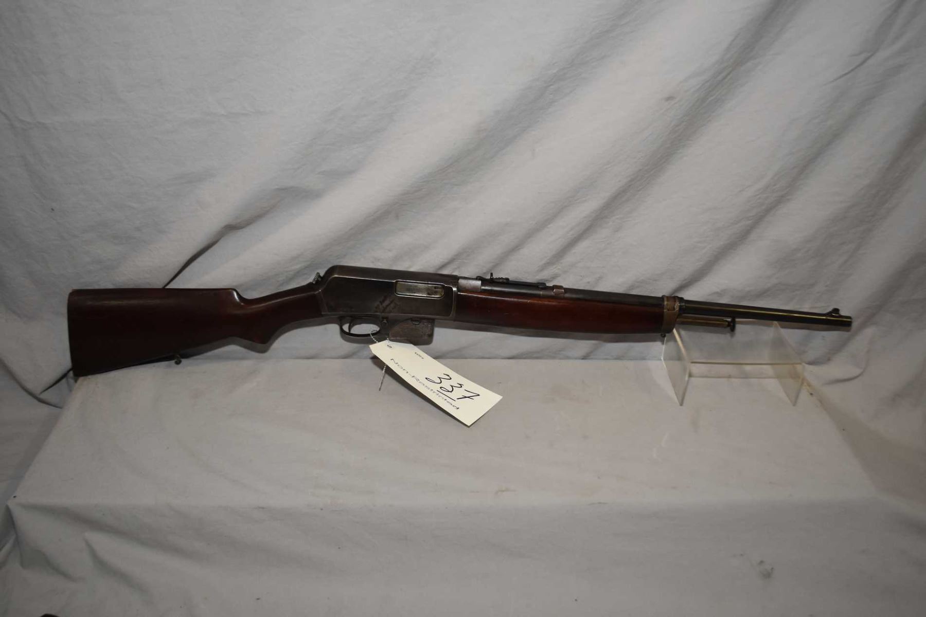 Winchester Model 1910 SL .401 Cal Mag Fed Semi Auto Rifle w/ 20" bbl [ blued finish turning brown, Note : barrel by back sight, good wood with slight crack front forend, missing the butt plate, has sling studs, rust to mag, various marks and scratches to wood and metal, Circa 1910 Early First Year of Production ] Ser # 508