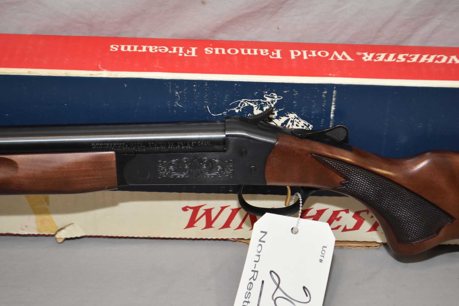 Winchester Model 37 A .20 Ga 3" Single Shot Break Action Shotgun w/ 28" full choke bbl [ appears excellent in original box, blued finish, checkered pistol grip stock and forend, c/w booklet, some marks to butt stock, forewood appears good ] Ser # C042189