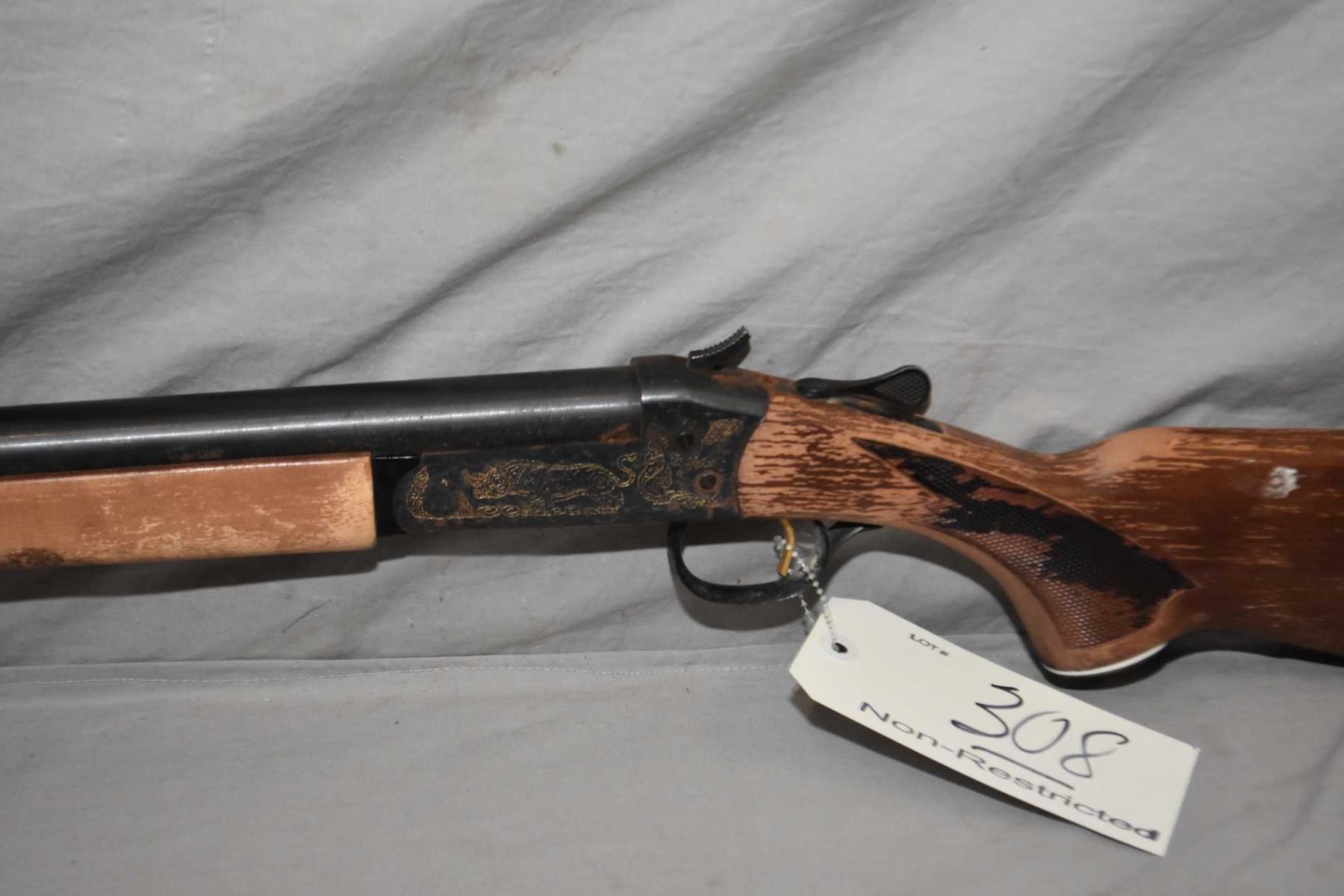 Winchester Model 37 TR .12 Ga 3" Single Shot Break Action Shotgun w/ 32" bbl [ blued finish, with some marks and surface rust, lightly engraved gold highlighted receiver, depicting a Rhino, flaking varnis on wood ] Ser # C977818
