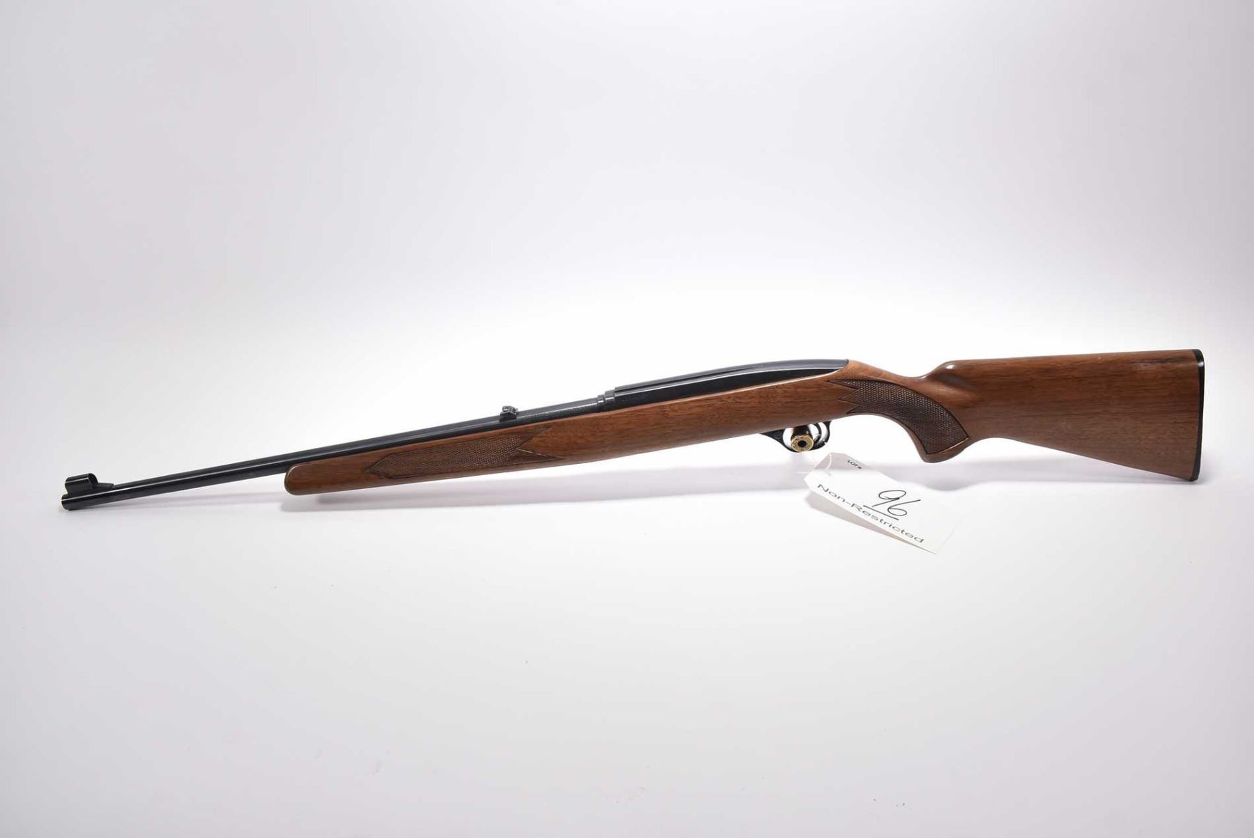 Winchester Model 490 .22 LR Cal Mag Fed Semi Auto Rifle w/ 22" bbl [ blued finish, barrel sights, pressed checkered pistol grip stock and forend, w/ Winchester Repeating Arms butt plate, few slight marks to wood and metal ] Ser # J030472