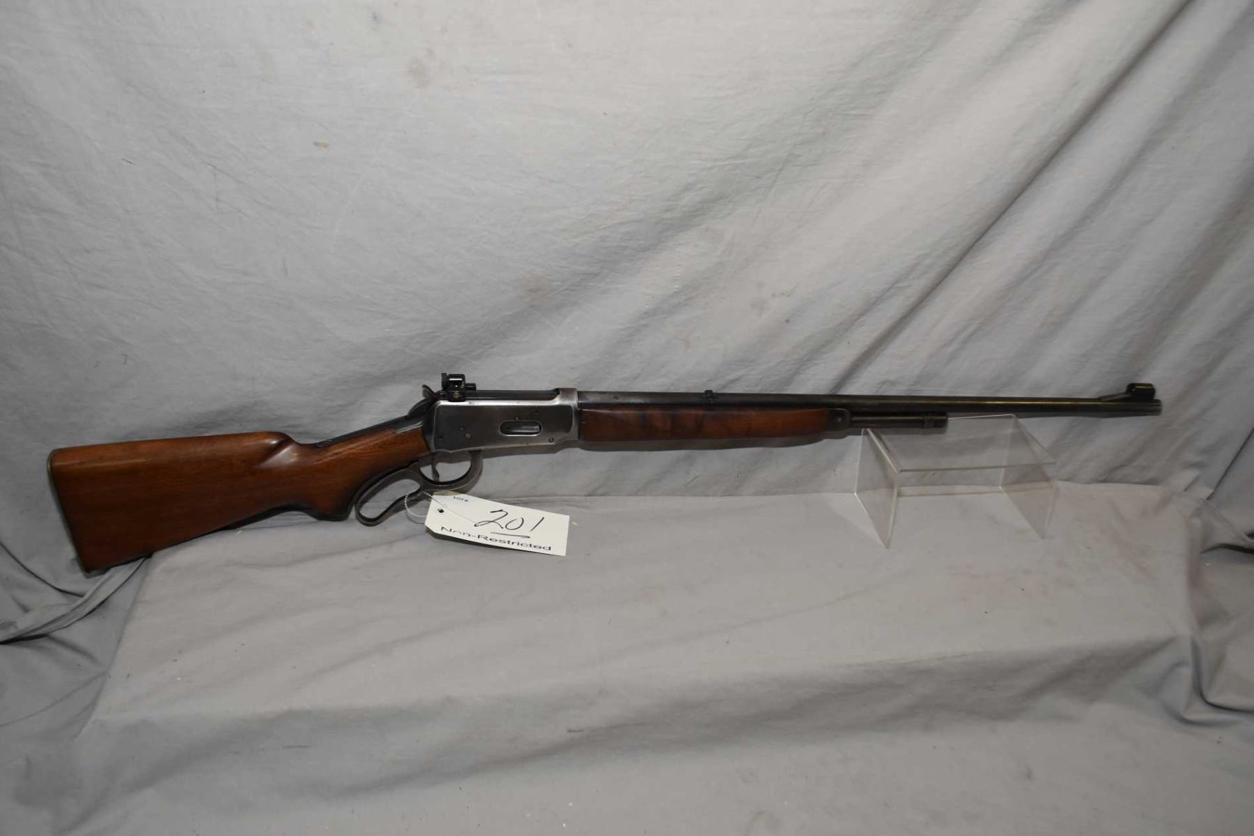 Winchester Model 64 .32 Win Spec Cal Lever Action Rifle w/ 24" round barrel 2/3 Mag [ blued finish starting to fade more in carry areas, back barrel sight removed and wedge installed, with receiver mounted Williams peep sight, good pistol grip stock and forend with slight cracks and a small chip, checkered metal butt plate, some marks and scratches to wood and metal, shotgun style butt plate, Circa 1955 ] Ser # 2059781