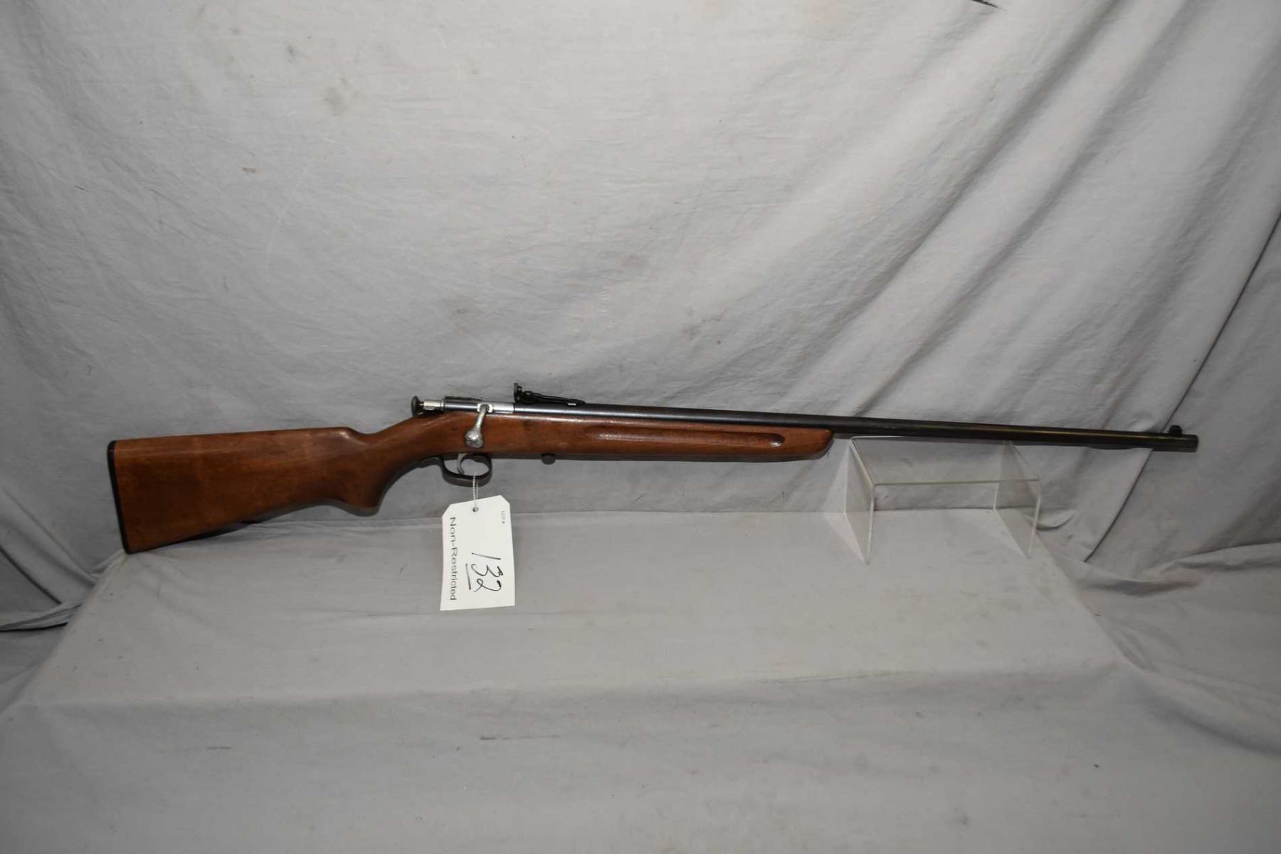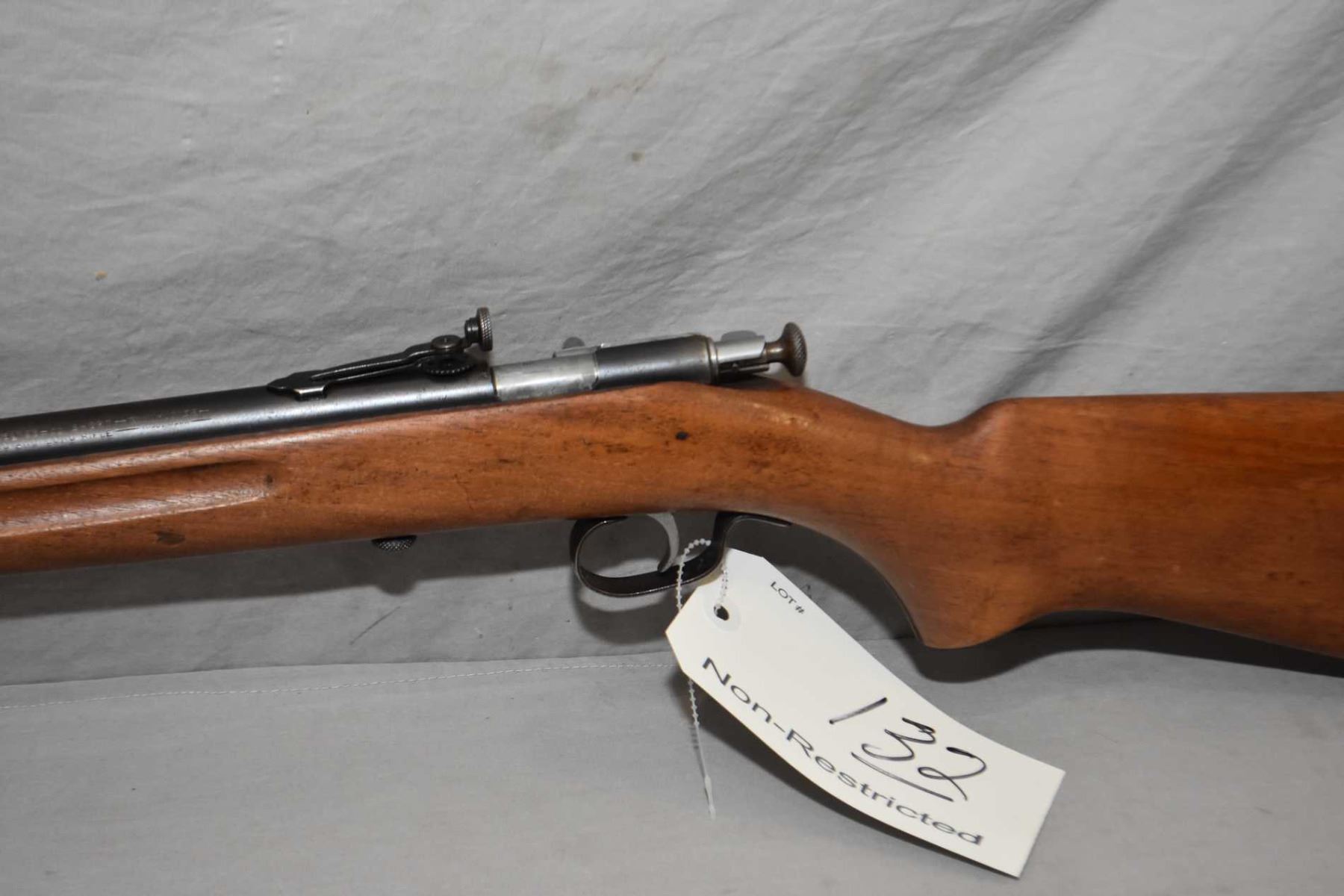 Winchester Model 68 .22 LR Cal Single Shot Bolt Action Rifle w/ 27" bbl [ blued finish starting to fade, barrel sights, with rear peep sight, pistol grip stock w/ fluted forend, Winchester Repeating Arms butt plate, few marks to wood and metal, also flaking varnish to the wood ] Ser # Nil