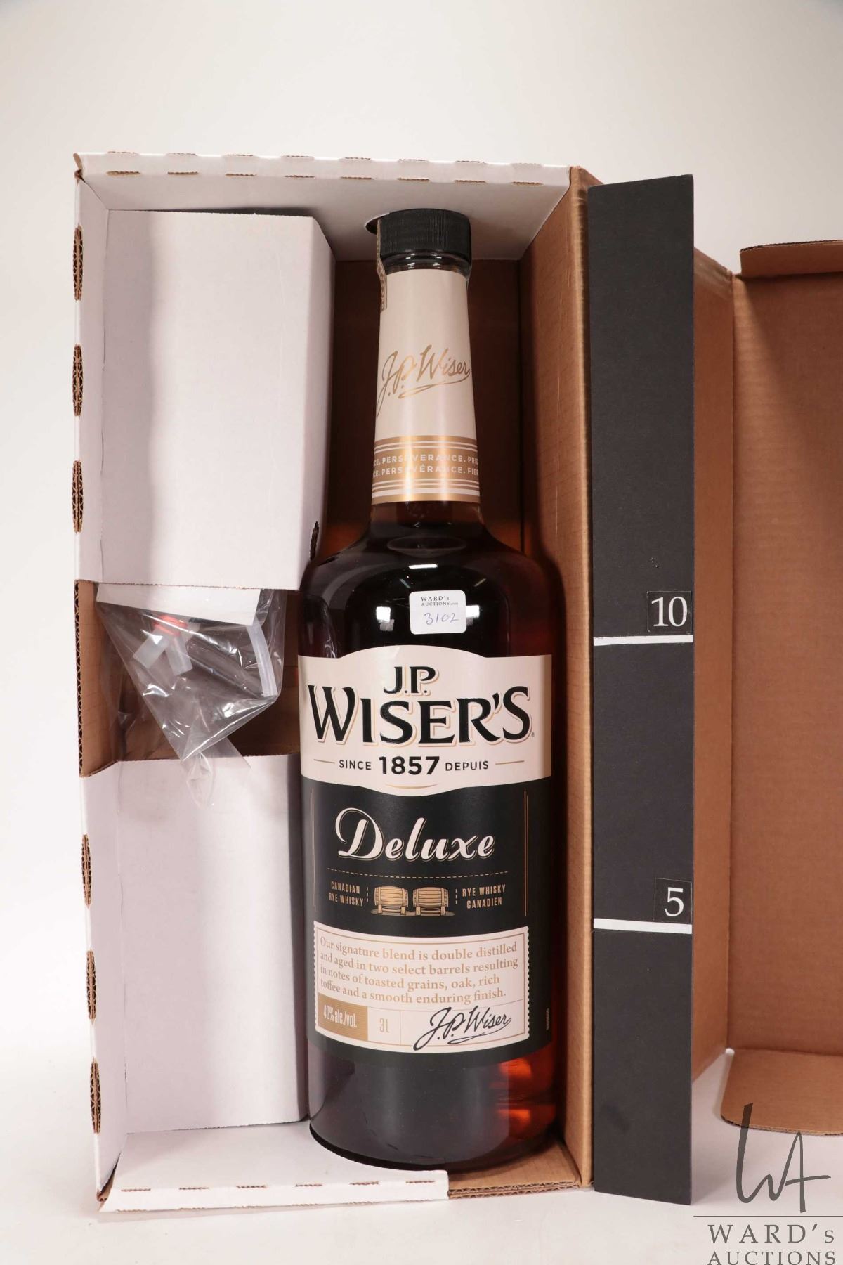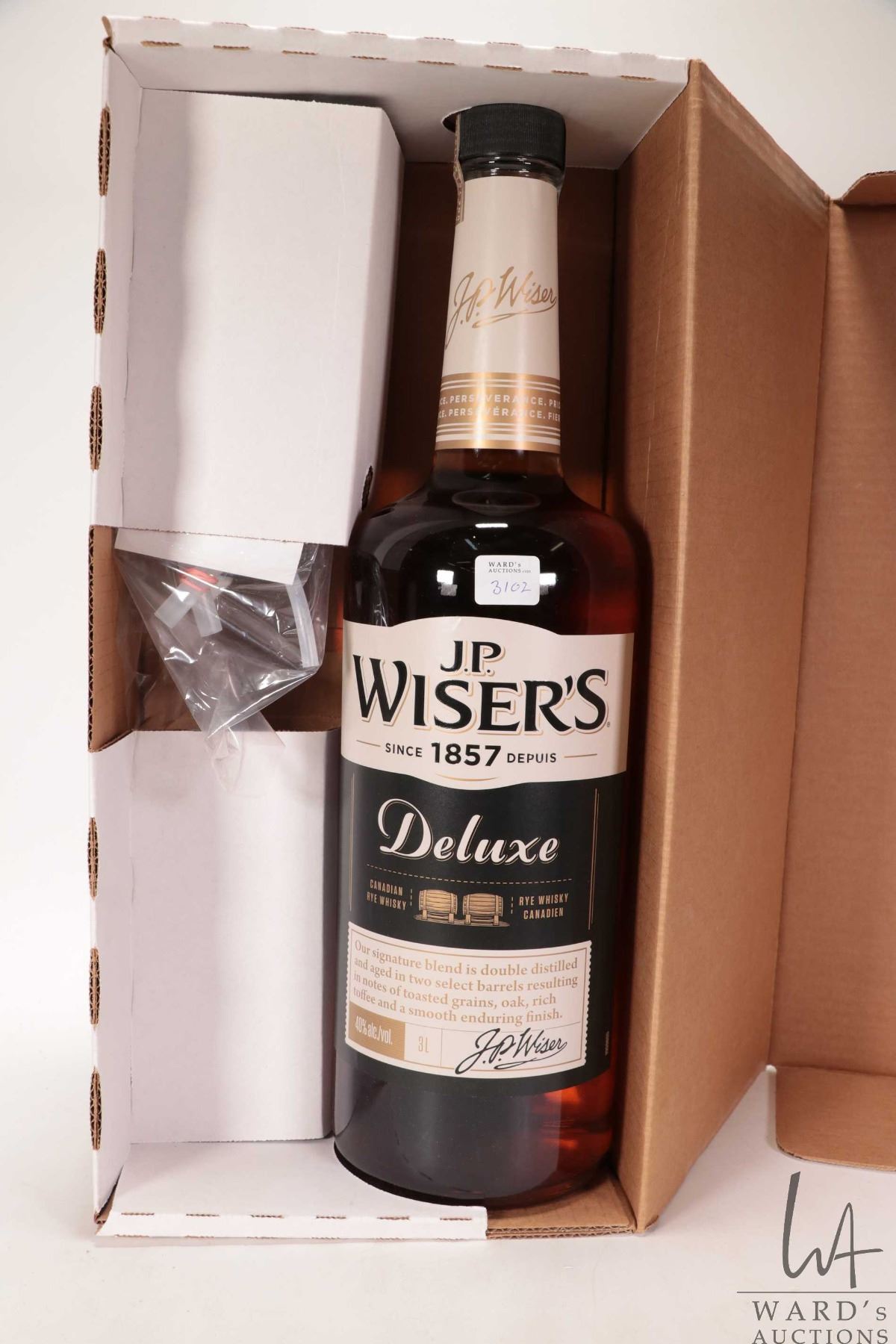 Wiser's/ Deluxe Whisky/ 3 ltr. Texas Mickey/ 40% ABV/ Includes pump Note: Alcohol cannot be insured by any courier in Canada. Local pick up is recommended. Canadian bidders only