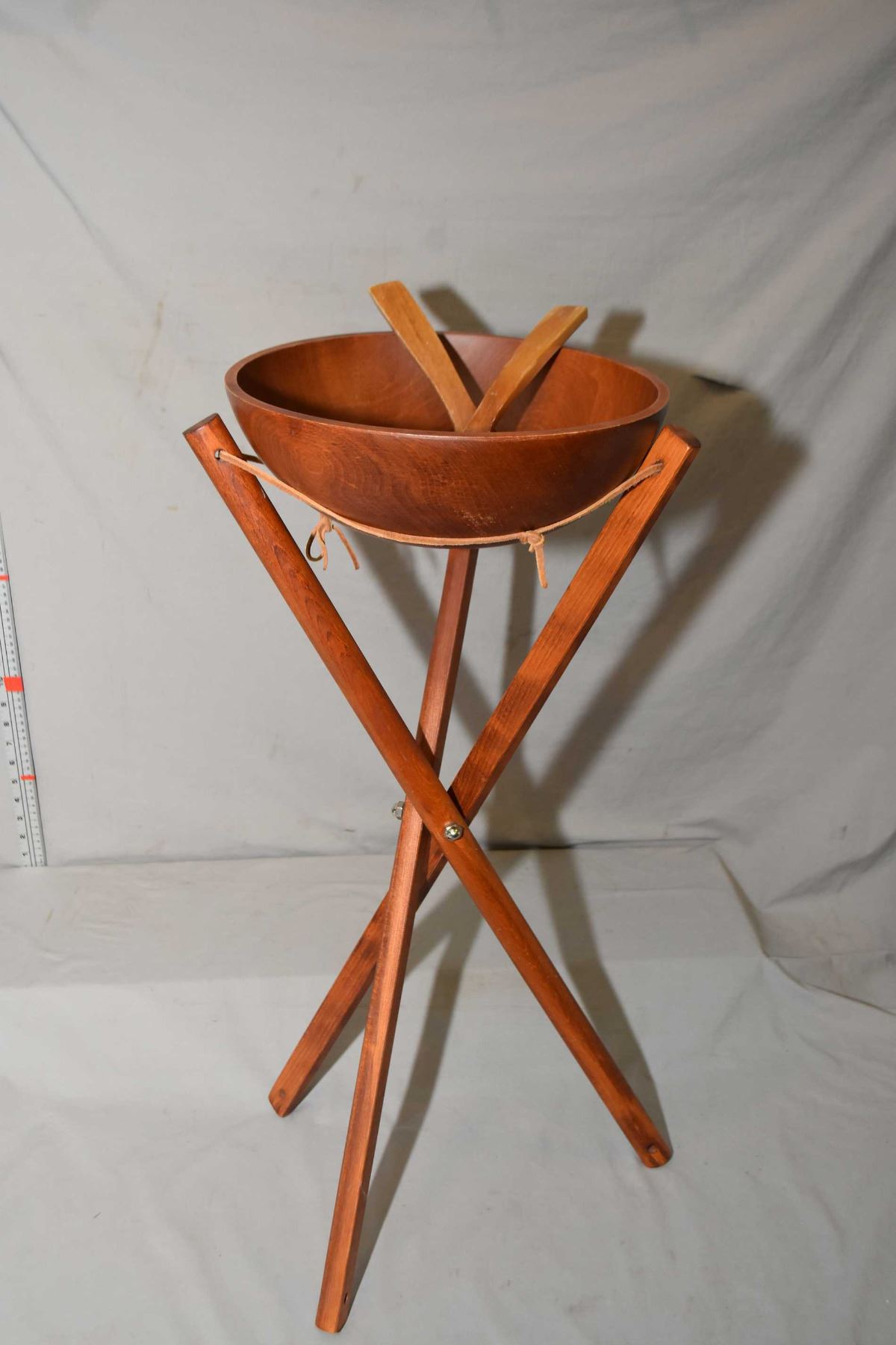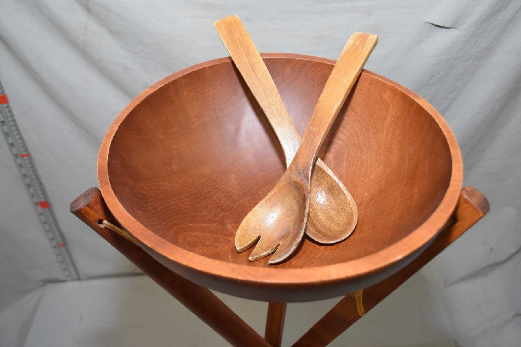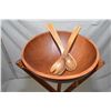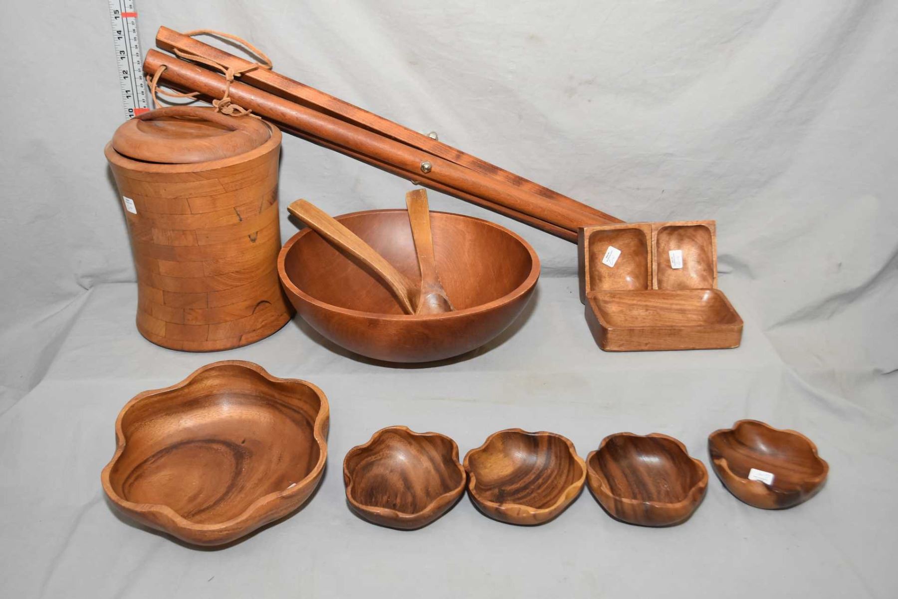 Wood salad set including bowl and four dishes, tableside salad dish with servers plus a wooden lined ice bucket etc.