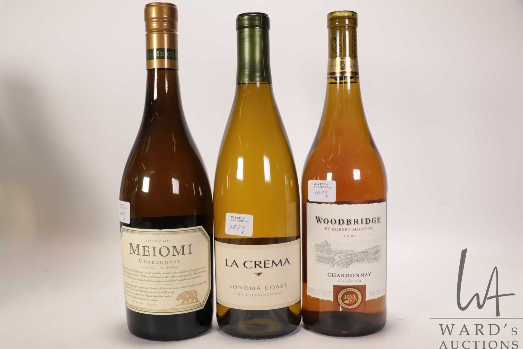 Woodbridge/ 2008/ Chardonnay/ 750ml/ 13.5% ABV, Meiomi/ Chardonnay/ 750ml/ 13.8% ABV and La Crema/ 2014/ Chardonnay/ 750ml/ 13.5% ABV Note: Alcohol cannot be insured by any courier in Canada. Local pick up is recommended. Canadian buyers only.