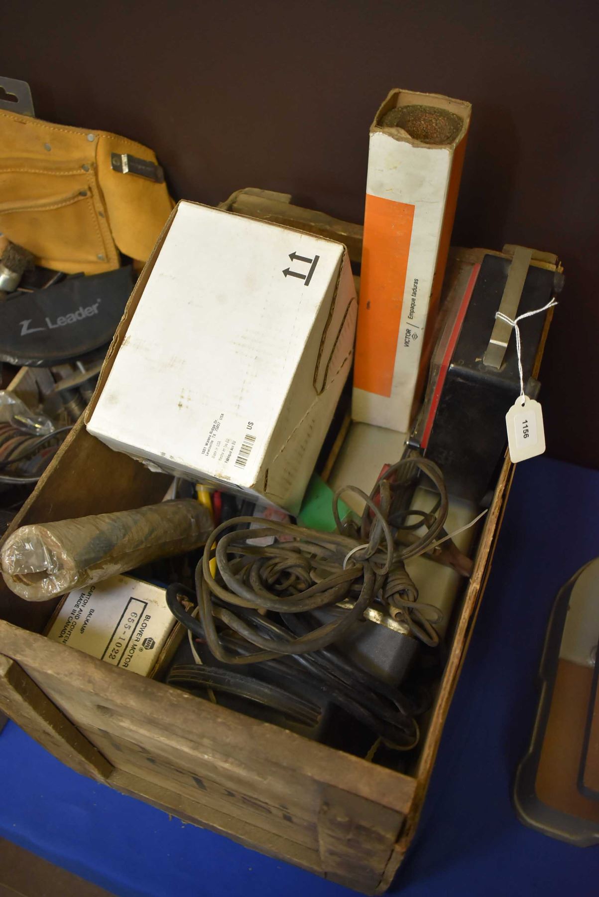 Wooden Pepsi box containing assorted tools including air conditioning fittings, multi meter, tach. dwell gauge etc.