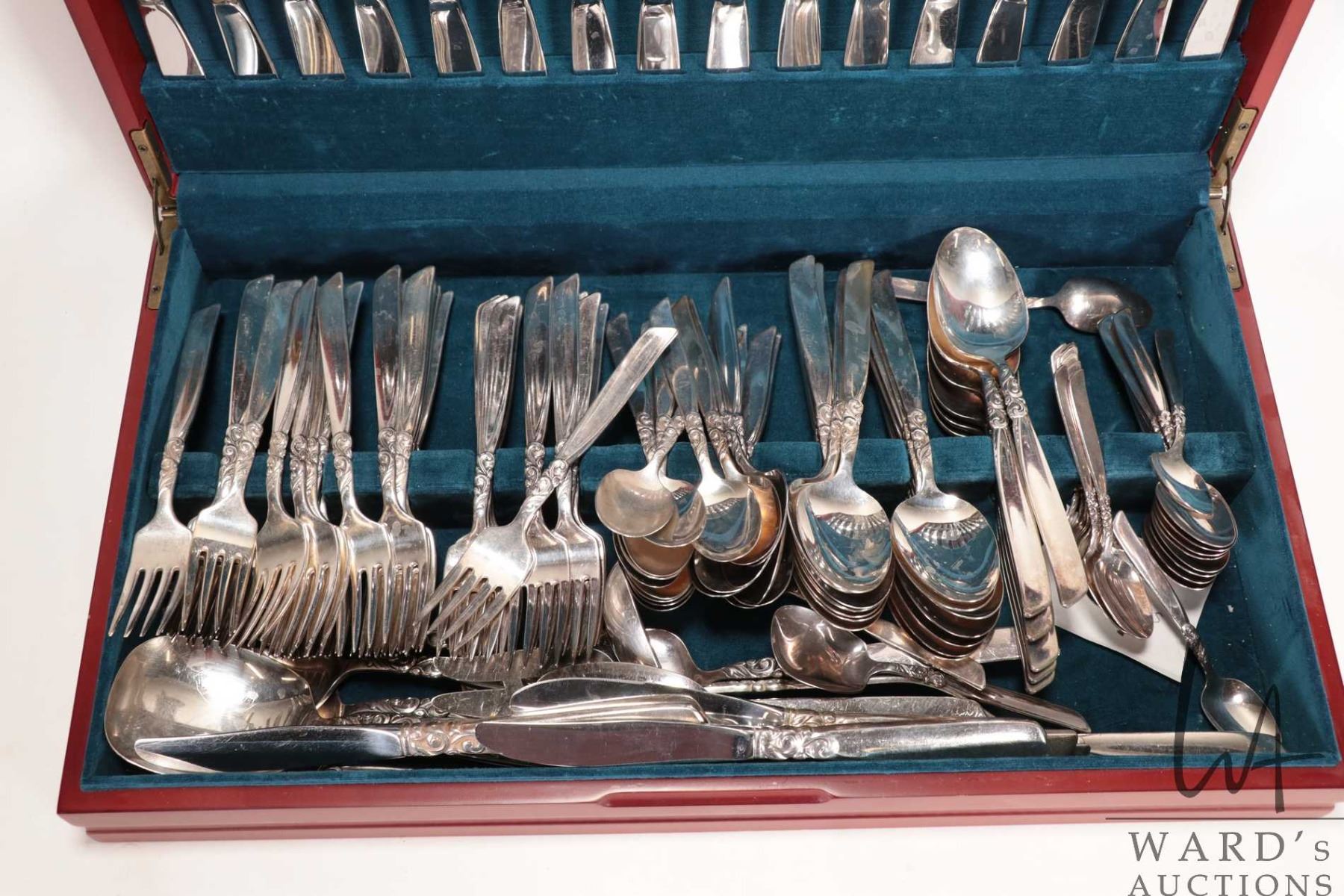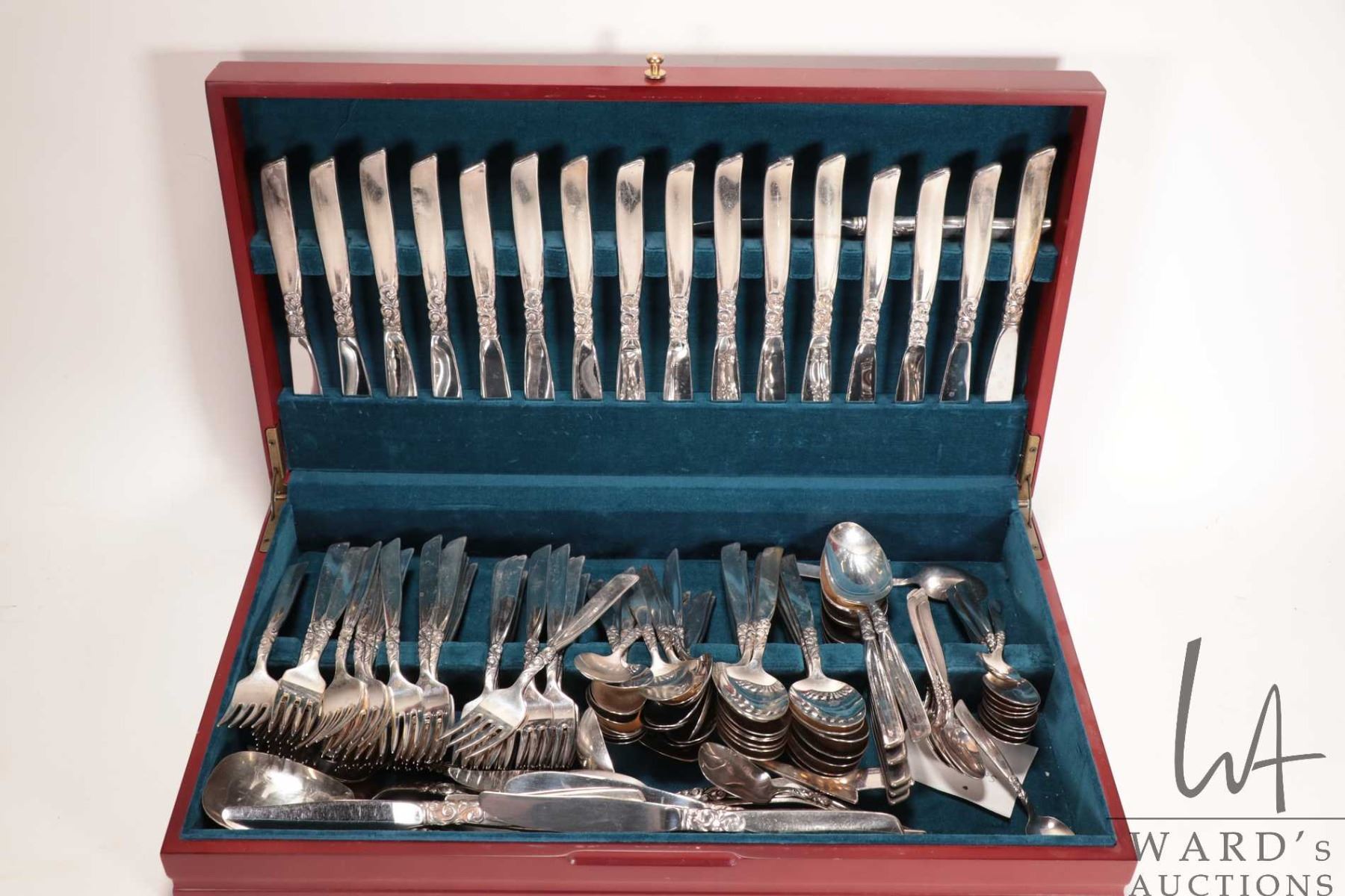 Wooden canteen containing large selection of Community Plate silverplate flatware, approximately 153 pieces