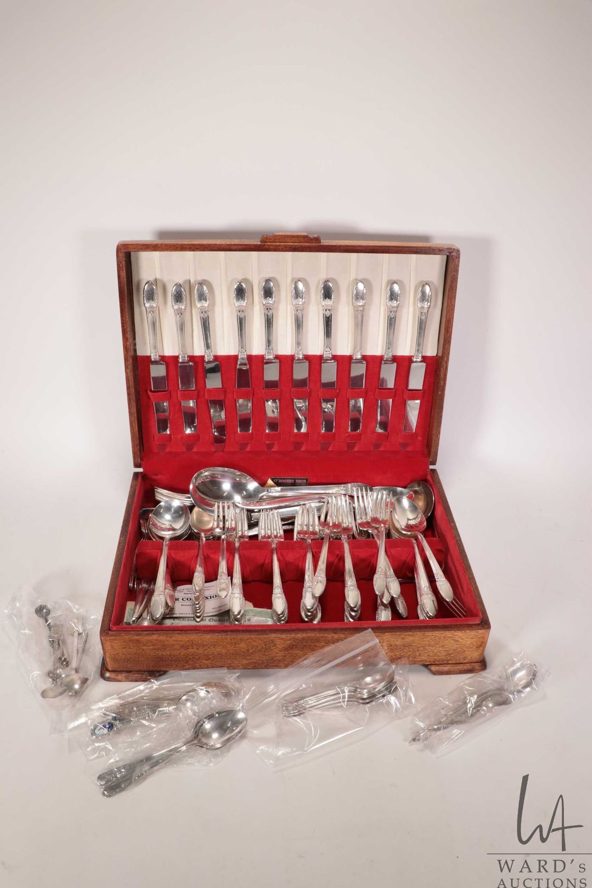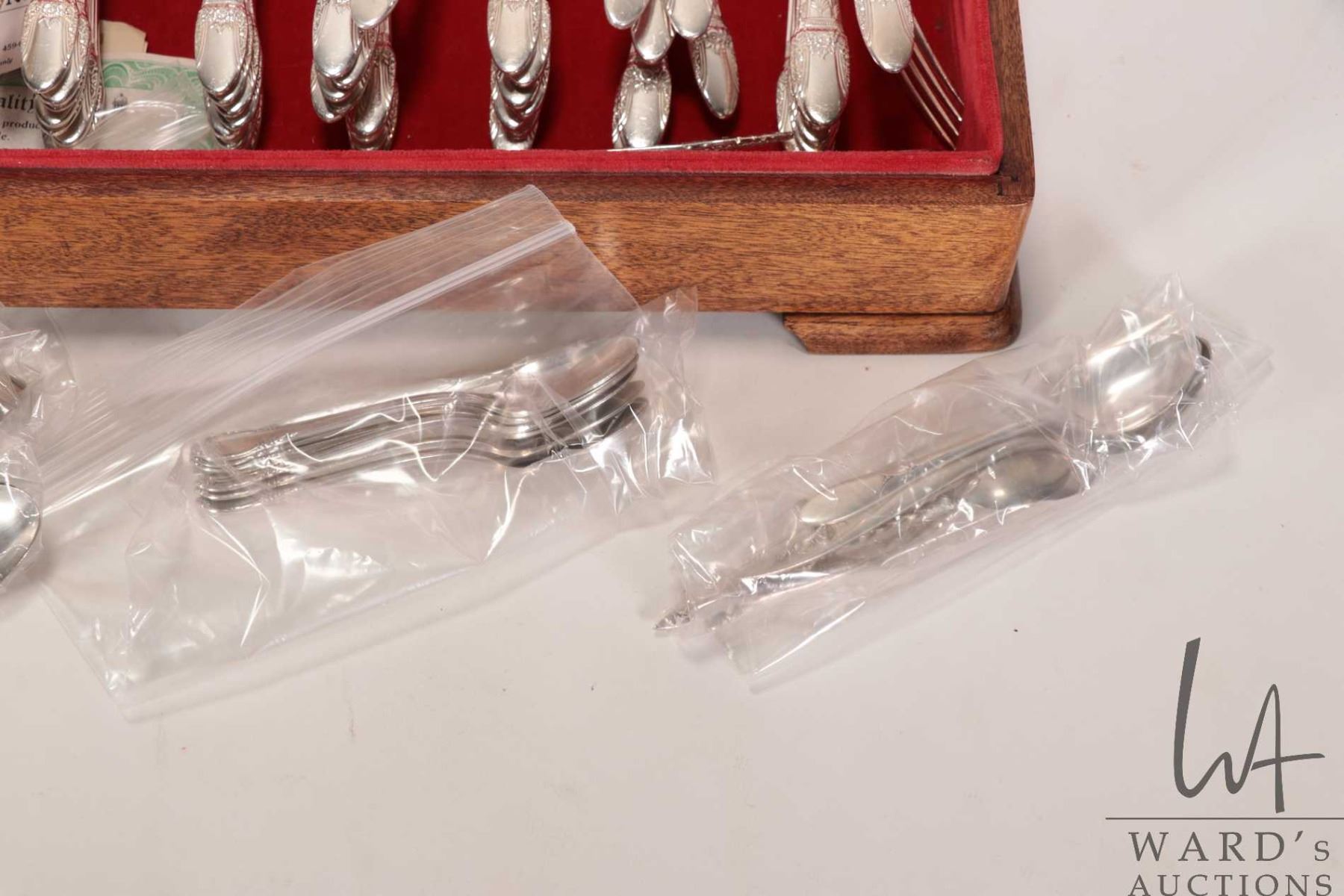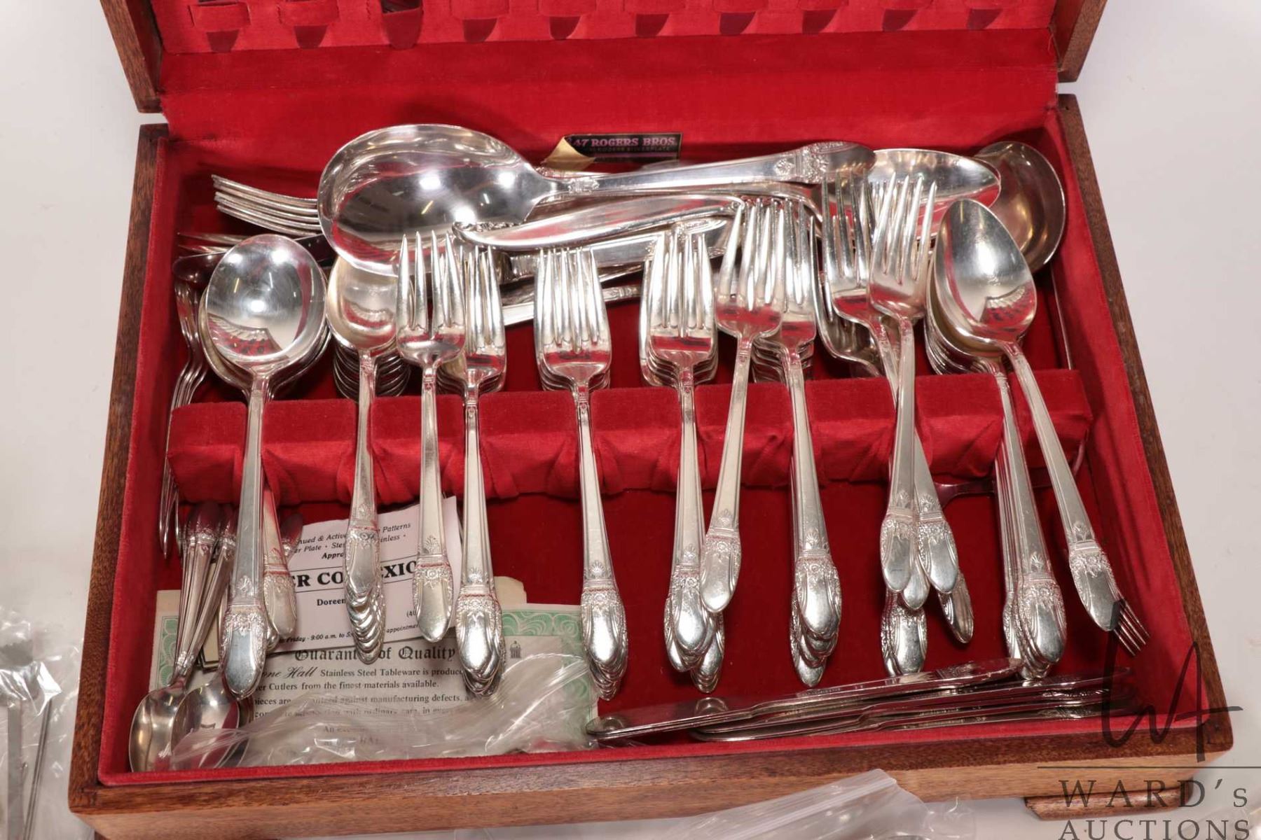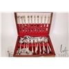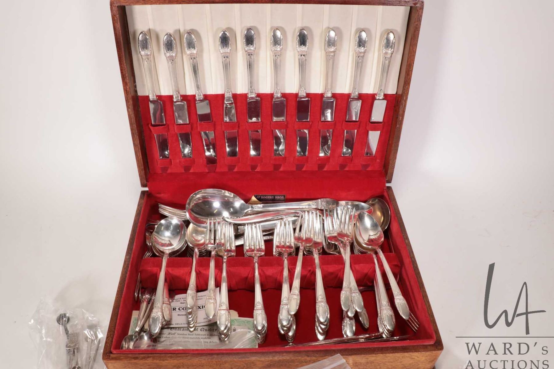 Wooden canteen of Rogers Bros. "First Love" silver plate flatware