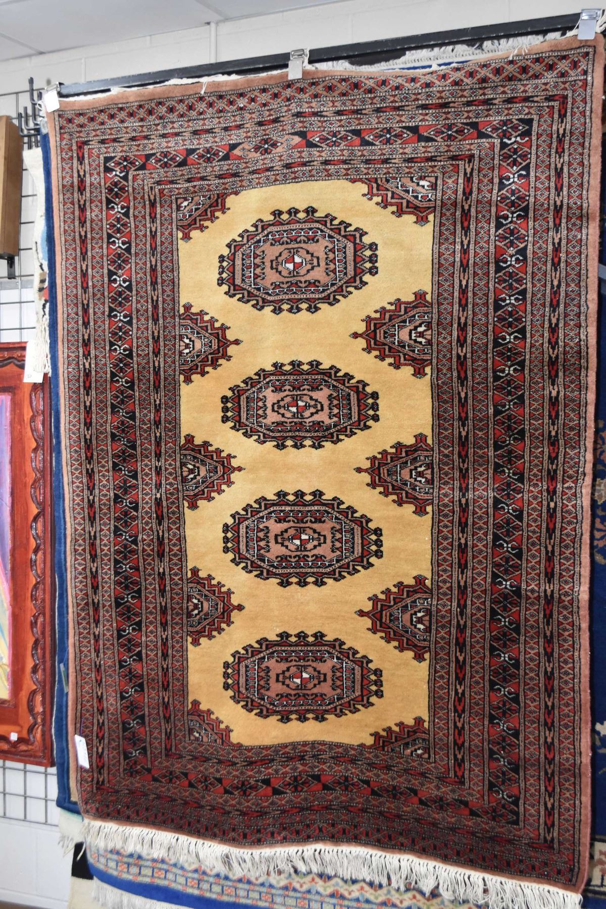 Wool and silk blend (?) area rug with multiple geometric borders and medallion in shades or deep red, gold and brown 48" X 66"