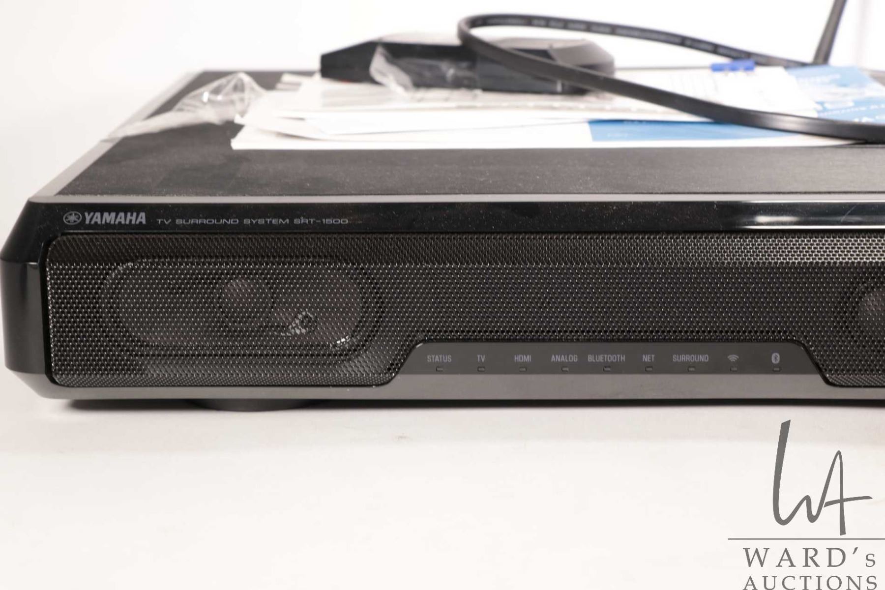 Yamaha television surround system model SRT-1500, includes construction manual and remote, working at time of cataloguing