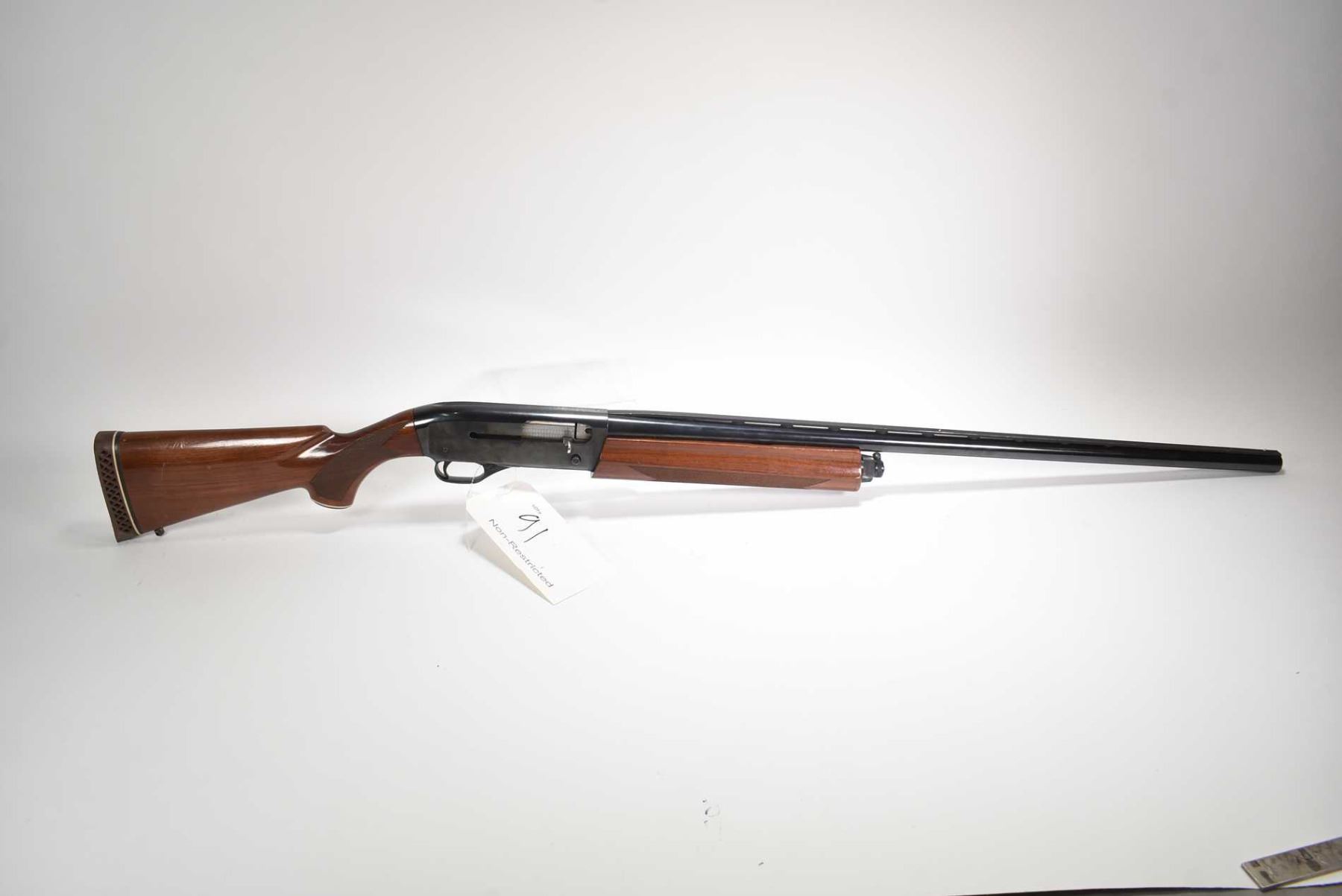 Non-Restricted shotgun Winchester model Super-X Model 1, 12 ga. 2 3/4" semi automatic, w/ bbl length 30" [Blued ribbed barrel with front and mid bead sight and full choke, blued receiver, wooden stock and forend with checkering. Browning recoil pad. Nicks and scratches to wood and metal] serial # M76595, PAL required