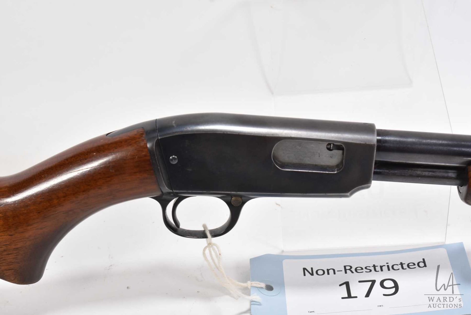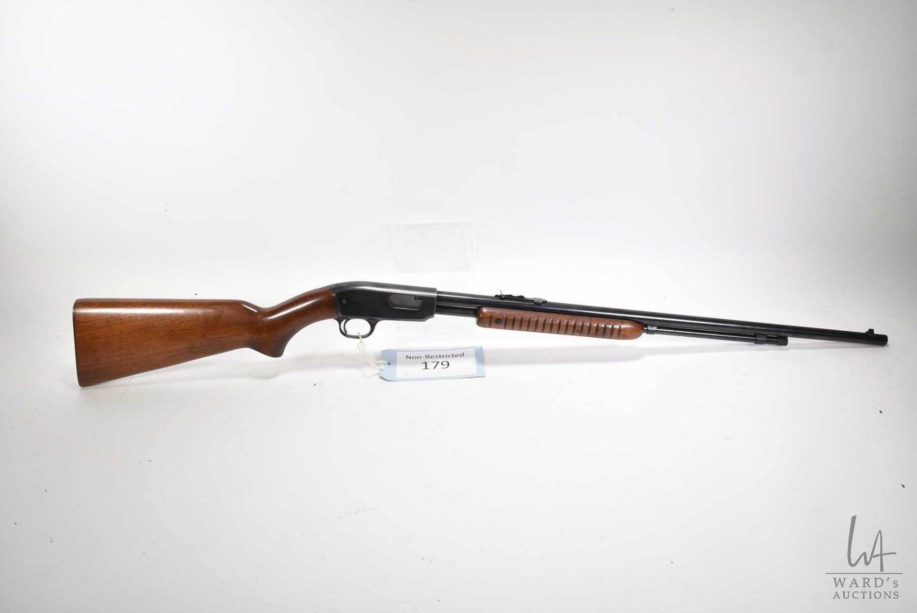 Non-Restricted rifle Winchester model 61 (Dated 1947), 22 S-L-LR pump action, w/ bbl length 24" [Blued barrel and receiver. Fixed front and elevation adjustable rear sight. Smooth wooden stock with ribbed forend. Checkered metal butt plate. Does not appear overly used. Action function smooth with minor use, handling and storage marks to wood and metal.] serial # 78434, PAL required