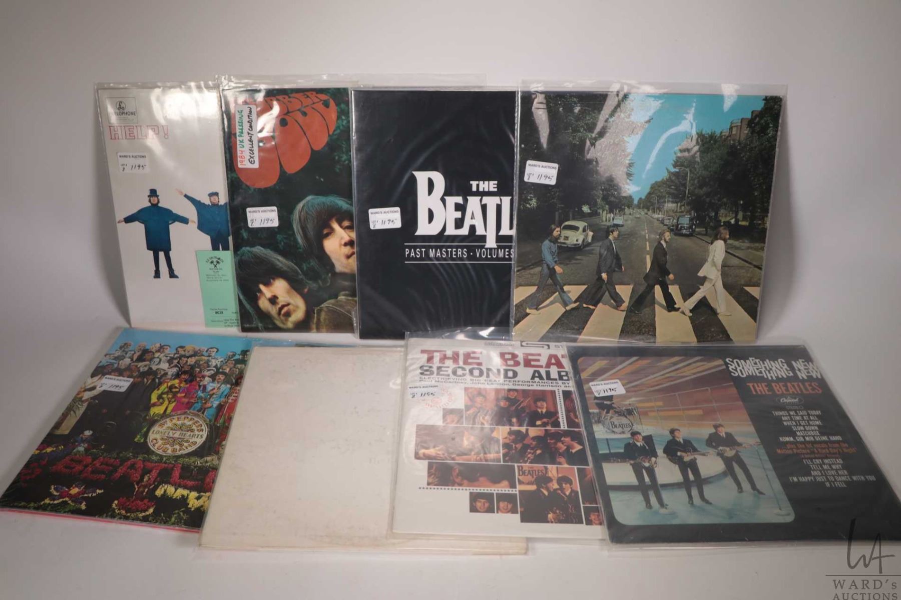 Eight Beatles LPs including "Sgt. Peppers" remastered, a vintage "White Album", factory sealed "The Second Album" (US pressing), "Something New" (Canada), factory sealed 1995 edition of "Help", "Rubber Soul (US) etc.